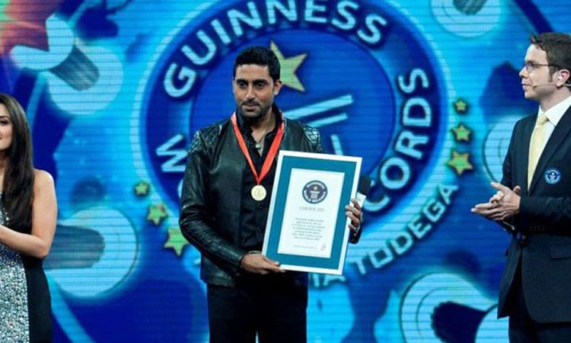 بالی ووڈ کے شہنشاہ امیتابھ بچن کے بیٹے و اداکار ابھیشیک بچن کا نام سال 2009 سے گنیز بک آف ورلڈ ریکارڈ میں شامل کیا ہے۔