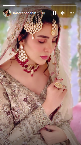اس سے قبل اریبہ حبیب نے اپنی انسٹا اسٹوری پر ایک تصویر شئیر کی تھی جس میں انہیں دلہن کے لباس میں دیکھا گیا تھا۔