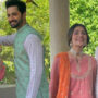 ان تصاویر میں یہ دونوں اداکار ایک ساتھ بہت خوش نظر آرہے ہیں ،عائزہ خان خوبصورت غرارہ زیب تن کی ہوئی ہیں جبکہ دانش تیمور قیمض شلوار پہنے ہوئے ہیں۔