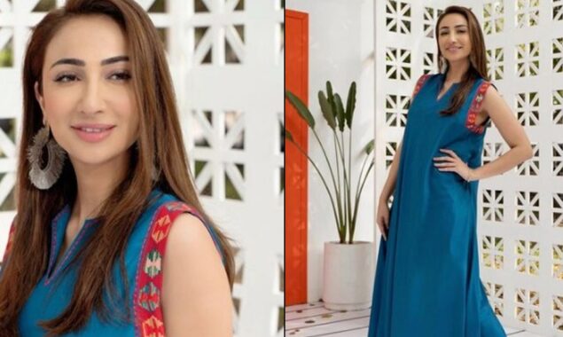 انسٹاگرام پر پوسٹ کی جانے والی تصویر میں دیکھا جا سکتا ہے کہ اداکارہ انوشے اشرف نیلے رنگ کا لباس زیب تن کی ہوئی ہیں۔