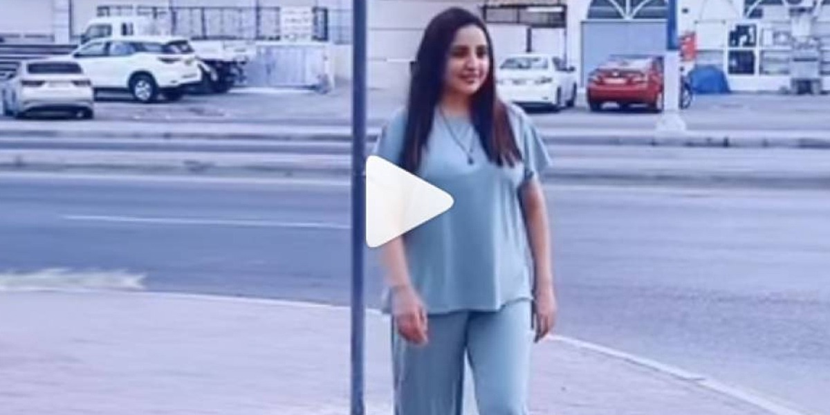 ویڈیو میں دیکھا جاسکتا ہے کہ کیمرے کو دیکھتے ہوئے حریم مسکراتے ایک مخصوص انداز اپنائے فٹ پاتھ پر چل رہی ہیں جبکہ سڑک کے دوسرے کنارے کافی گاڑیاں بھی کھڑی ہیں۔