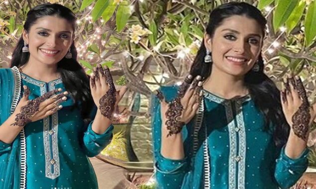 عائزہ خان کی جانب سے پوسٹ کی جانے والی تصاویر میں اداکارہ فیروزی رنگ کا  لباس زیب تن کی ہوئی تھیں جو اداکارہ کی خوبصورتی میں مزید اضافہ کر رہا تھا۔