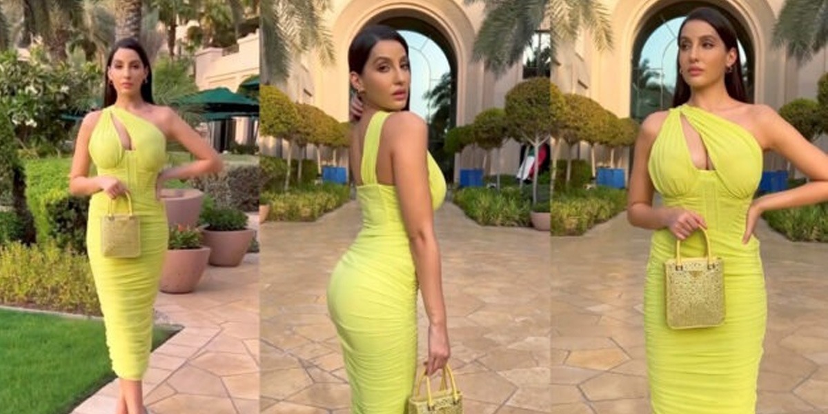 نورا فتیحی کی جانب سے انسٹاگرام پر پوسٹ کی جانے والی تصاویر میں دیکھا جا سکتا ہے کہ ڈانسر لیمن رنگ کا لباس زیب تن کی ہوئی ہیں۔