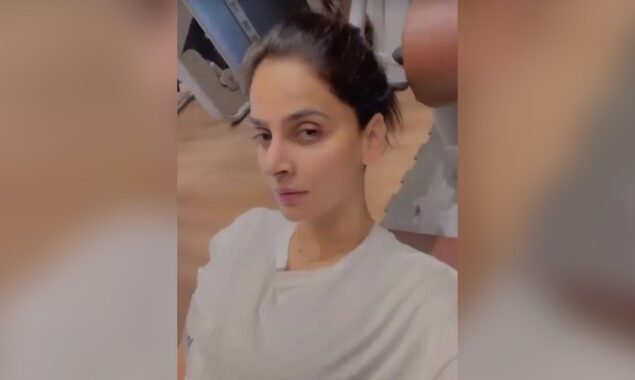 ویڈیو میں اداکارہ کو جِم میں ورک آؤٹ کرتے ہوئے دیکھا جاسکتا ہے۔