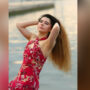 تصویر میں دیکھا جاسکتا ہے کہ ماڈل نے سرخ رنگ کا غیر مناسب لباس پہنا ہوا ہے اور اپنے بالوں کو کھلا چھوڑا ہوا ہے۔
