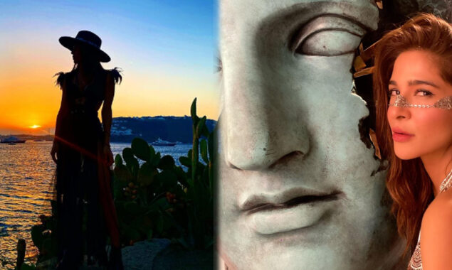 شیئر کی گئی تصاوی میں دیکھا جاسکتا ہے کہ اداکارہ سمندر کے کنارے کھڑی ہیں جہاں وہ غروب آفتاب کے منظر سے لطف اندوز ہو رہی ہیں۔
