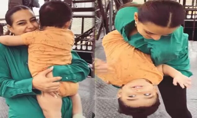 شیئر کی گئی ویڈیو میں دیکھا جا سکتا ہے کہ اداکارہ اپنے شوہر اور بیٹے کے ہمراہ انجوائے کر رہی ہیں۔