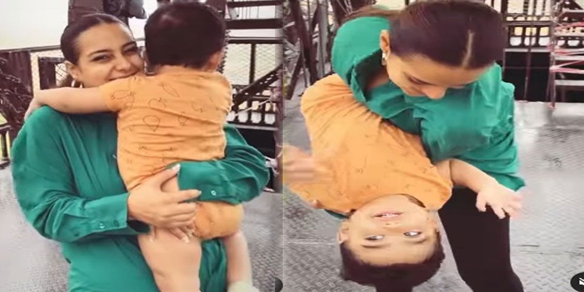 شیئر کی گئی ویڈیو میں دیکھا جا سکتا ہے کہ اداکارہ اپنے شوہر اور بیٹے کے ہمراہ انجوائے کر رہی ہیں۔