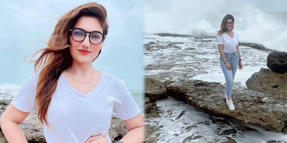 شیئر کی گئی تصاویر میں دیکھا جاسکتا ہے کہ سمن عابد نے سفید رنگ کی ٹی شرٹ اور جینز پہنی ہوئی ہیں اور سمندر کے کنارے کھڑی ہوئی ہیں جہاں وہ سمندر کی اٹھتی ہوئی لہروں سے لطف اندوز ہو رہی ہے۔