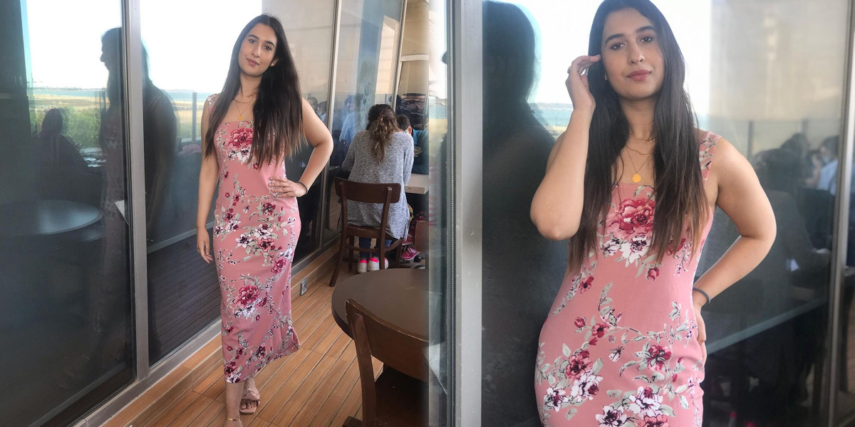 وائرل تصاویر میں دیکھا جاسکتا ہے کہ ماریہ فرقان نے گلابی رنگ کا غیر مناسب مغربی لباس زیب تن کیا ہوا ہے جس کے اوپت پھول بنے ہوئے ہیں جبکہ انہوں نے اپنے بالوں کو کھلا چھوڑا ہوا ہے۔