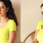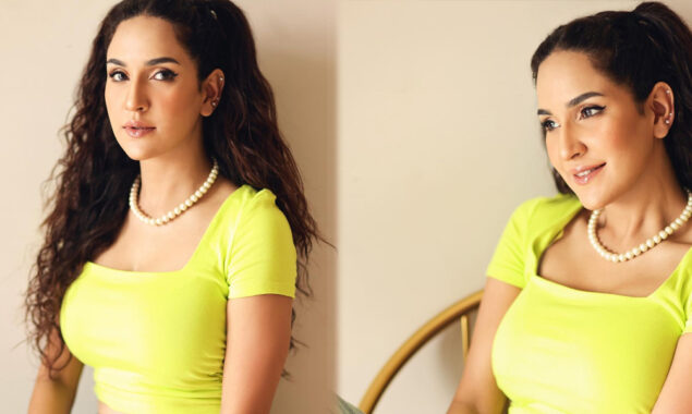 شیئر کی گئی تصاویر میں دیکھا جاسکتا ہے کہ انوشے عباسی نے پیلے رنگ کی غیر مناسب ٹی شرٹ پہنی اور جینز پہنی ہوئی ہے۔