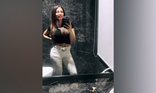 وائرل تصویر میں دیکھاجاسکتا ہے کہ اشنا شاہ نے انتہائی غیر مناسب سیاہ رنگ کی ٹی شرٹ اور سفید جینز پہنی ہوئی ہے اور آئینے کے سامنے کھڑے ہو کر تصویر بنائی۔