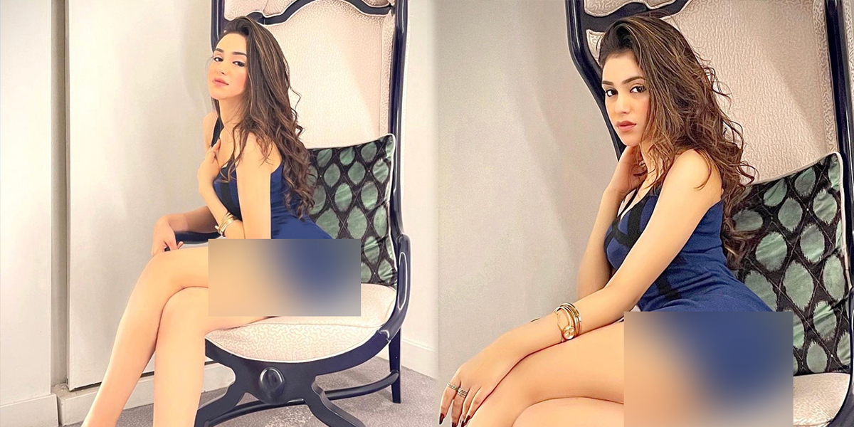 وائرل تصاویر میں دیکھا جاسکتا ہے کہ معروف ماڈل نے نیلے رنگ کا بیہودہ مغربی لباس پہنا ہوا ہے اور اپنے بالوں کو کھلا چھوڑا ہوا ہے۔
