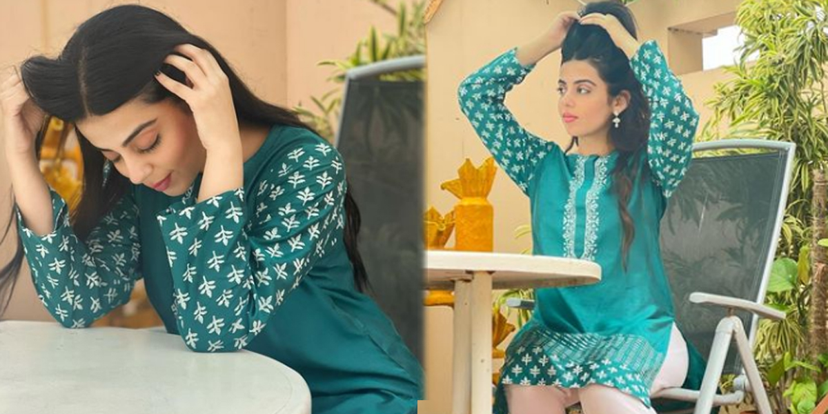 شیئر کی گئی تصاویر میں دیکھا جاسکتا ہے کہ اداکارہ نے کسی لان میں بیٹھی ہوئی ہیں اور انہوں نے سبز اور سفید رنگ کا خوبصورت لباس زیب تن کیا ہوا ہے اور اپنے بالوں کو ایک انوکھے انداز میں کھلا چھوڑا ہوا ہے۔