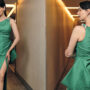 وائرل تصاویر میں دیکھا جاسکتا ہے کہ معروف اداکارہ نے سبز رنگ کا غیر مناسب لباس زیب تن کیا ہوا ہے۔