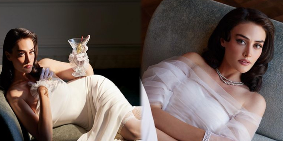 شیئر کی گئی تصاویر میں دیکھا جاسکتا ہے کہ ایسرا بلگیچ نے سفید رنگ کا انتہائی غیر مناسب لباس زیب تن کیا ہوا ہے اور صوفے پر لیٹی ہوئی ہیں۔