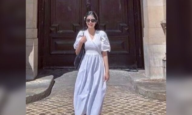 شیئر کی گئی تصویر میں دیکھا جاسکتا ہے کہ اداکارہ نے سفید رنگ کا خوبصورت لباس زیب تن کیا ہوا ہے۔