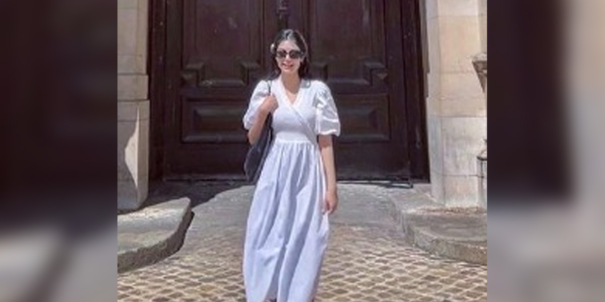 شیئر کی گئی تصویر میں دیکھا جاسکتا ہے کہ اداکارہ نے سفید رنگ کا خوبصورت لباس زیب تن کیا ہوا ہے۔
