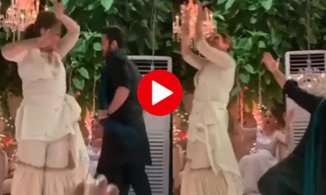 ویڈیو میں دیکھا جاسکتا ہے کہ سینئر اداکارہ بشریٰ انصاری اور گلوکار اذان سمیع خان بھارت کے مشہور گانے جا پڑوسی کے چولہے سے آگ لے لے پر ڈانس کر رہے ہیں۔