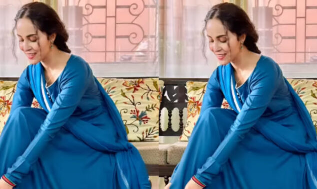 شیئر کی گئی ویڈیو میں دیکھا جاسکتا ہے اداکارہ نے نیلے رنگ کا خوبصورت لباس زیب تن کیا ہوا ہے۔