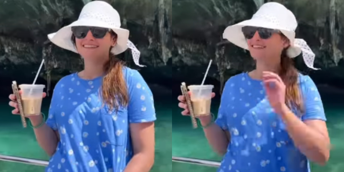 شیئر کی گئی ویڈیو میں منال خان نے خوبصورت مغربی لباس زیب تن کیا ہوا تھا اور چائے پی رہی تھیں۔