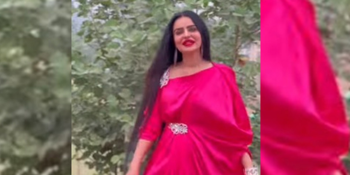 شیئر کی گئی تصاویر میں ٹک ٹاک اسٹار نے سرخ رنگ کا خوبصورت لباس زیب تن کیا ہوا تھا۔
