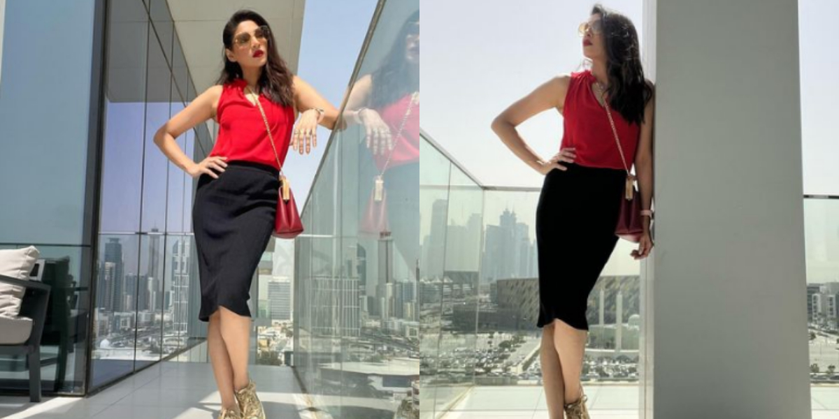 شیئر کی گئی تصاویر میں دیکھا جاسکتا ہے کہ اداکارہ نے کافی بولڈ مغربی لباس زیب تن کیا ہوا ہے۔