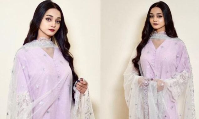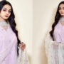 شیئر کی گئی تصویر میں دیکھا جاسکتا ہے کہ عائشہ نے جامنی رنگ کا خوبصورت لباس زیب تن کیا ہوا ہے اور سفید رنگ کا دوپٹہ لیا ہوا ہے جبکہ انہوں نے اپنے بالوں کو کھلا چھوڑا ہوا ہے۔