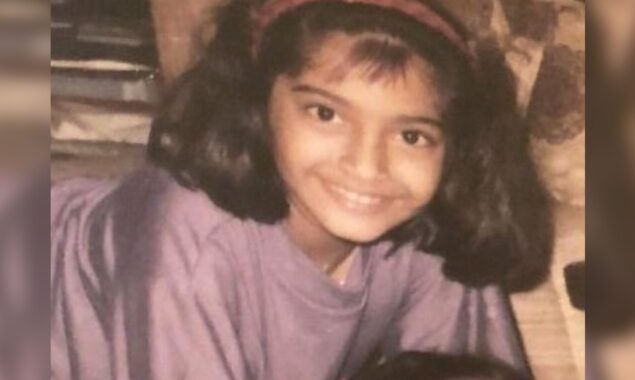 تصویر میں موجود یہ بچی کوئی اور نہیں بلکہ مشہور بالی ووڈ اداکارہ سونم کپور ہیں۔