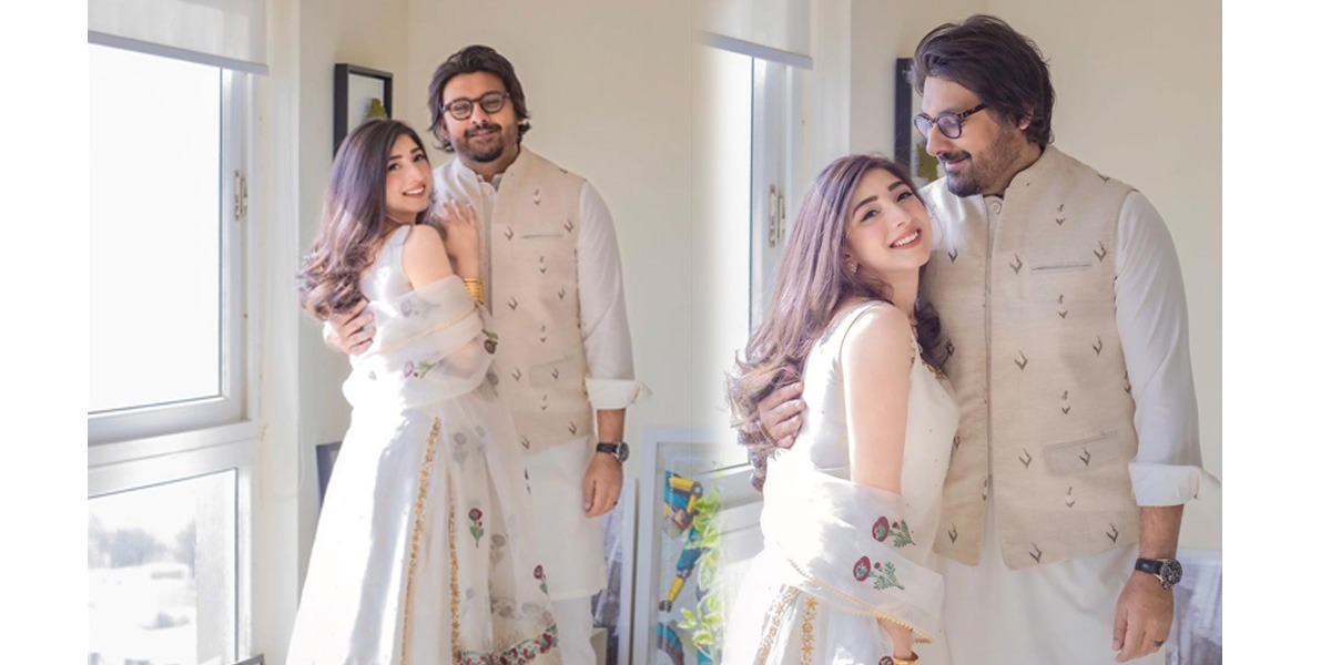 شیئر کی گئی تصاویر میں دیکھا جاسکتا ہے کہ اداکارہ اور اُن کے شوہر نے سفید رنگ کا مشرقی لباس زیبِ تن کیا ہوا ہے جس میں دونوں بہت خوبصورت لگ رہے ہیں۔