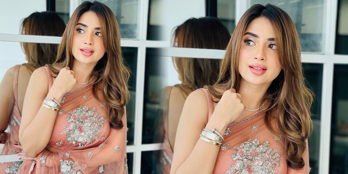 شیئر کی گئی تصاویر میں دیکھا جاسکتا ہے کہ اداکارہ نے پیچ رنگ کی ساڑھی زیبِ تن کی ہوئی ہے جس میں وہ بہت خوبصورت لگ رہی ہیں۔