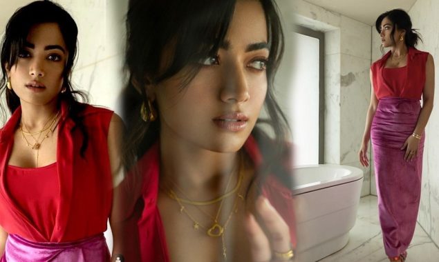 رشمیکا منڈنانے سرخ و گلابی گاؤن میں اپنا گلیمریس انداز دکھایا