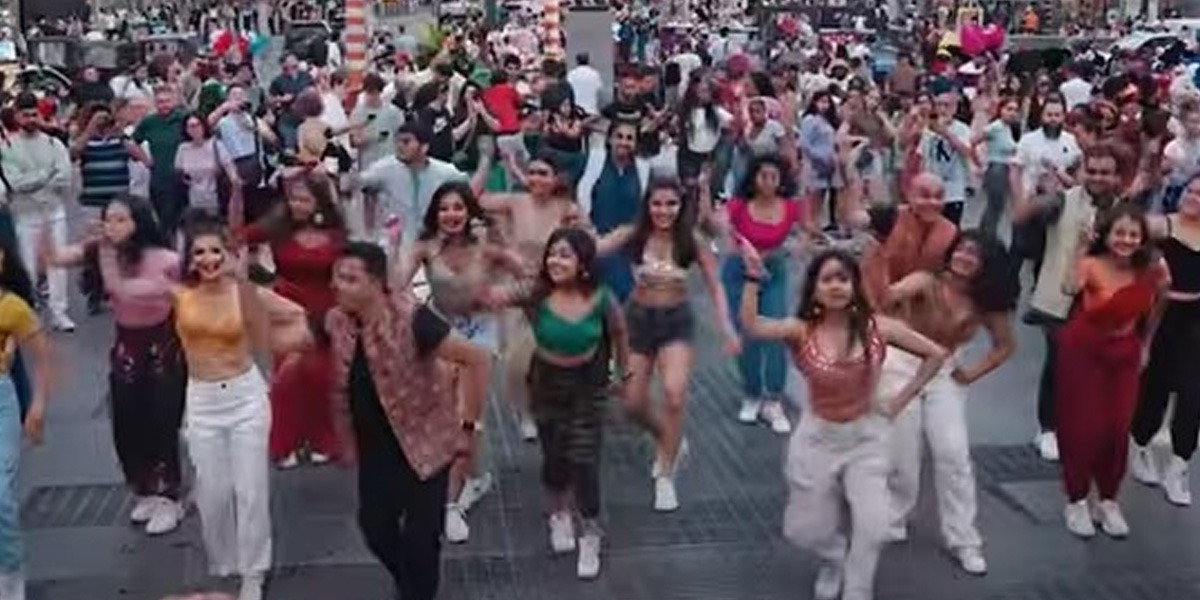 ٹائمز اسکوائر پر ’واٹ جھمکا‘ پر فلیش موب ڈانس کی ویڈیو کے چرچے ہو رہے ہیں۔