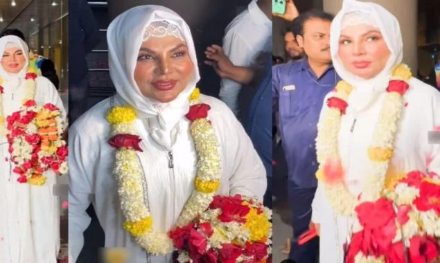 بالی ووڈ کی معروف اداکارہ راکھی ساونت آج صبح ہی عمرے کی ادائیگی کے بعد سعودی عرب سے واپس بھارت پہنچی ہیں۔