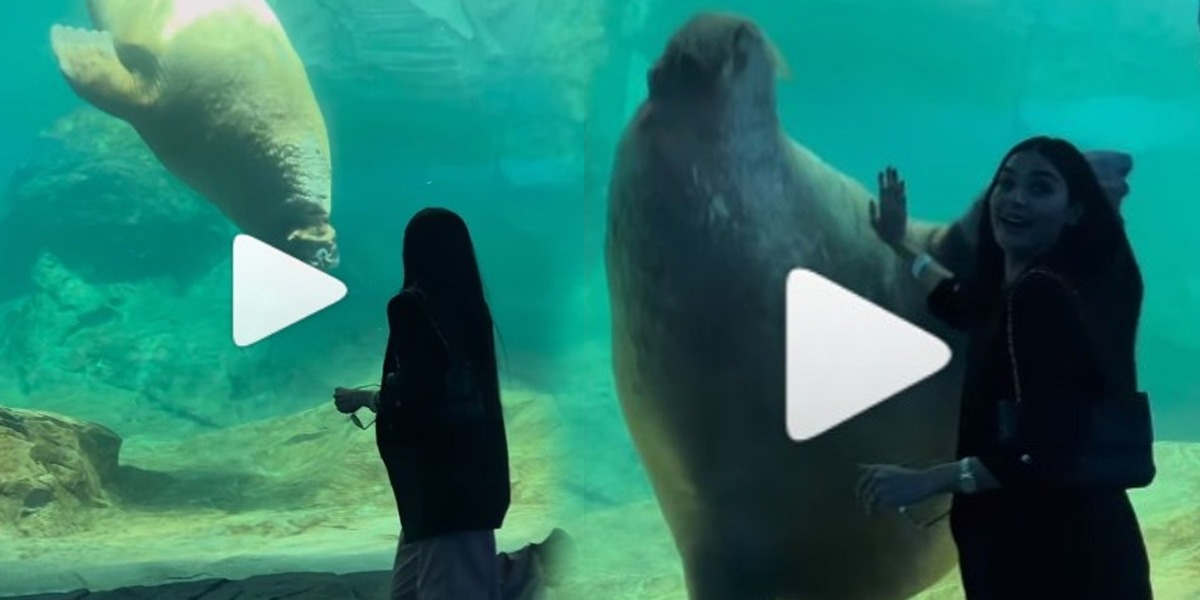 شیئر کی گئی ویڈیو میں مچھلی کو اداکارہ سعدیہ خان سے والہانہ محبت کا اظہار کرتے ہوئے دیکھا جاسکتا ہے۔