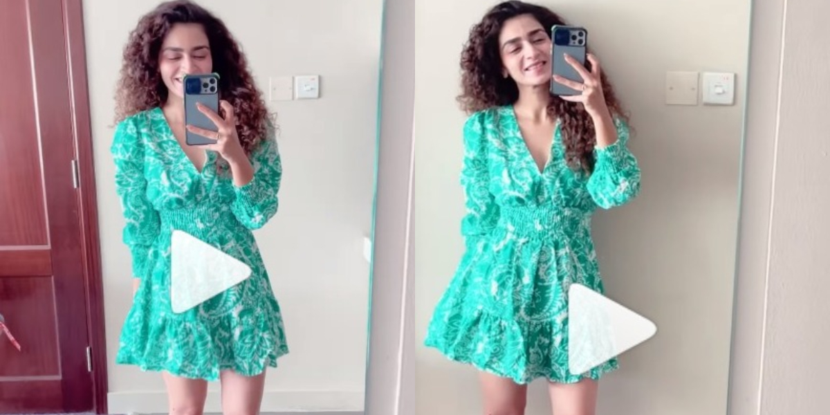 شیئر کی گئی ویڈیو میں دیکھا جاسکتا ہے کہ ہاجرہ یامین نے ہرے رنگ کا انتہائی غیر مناسب لباس زیبِ تن کیا ہوا ہے جبکہ انہوں نے اپنے بالوں کو کھلا چھوڑا ہوا ہے۔