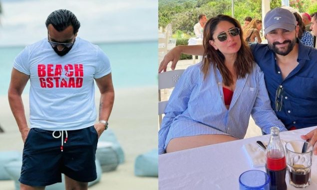 کرینہ کپور نے اپنے شوہر کی ساحل سمندر پر کھینچی تصاویر انسٹاگرام پر شیئر کیں اور کیپشن میں لکھا کہ ’میرا سیفو، میرا ہاٹ شوہر‘۔