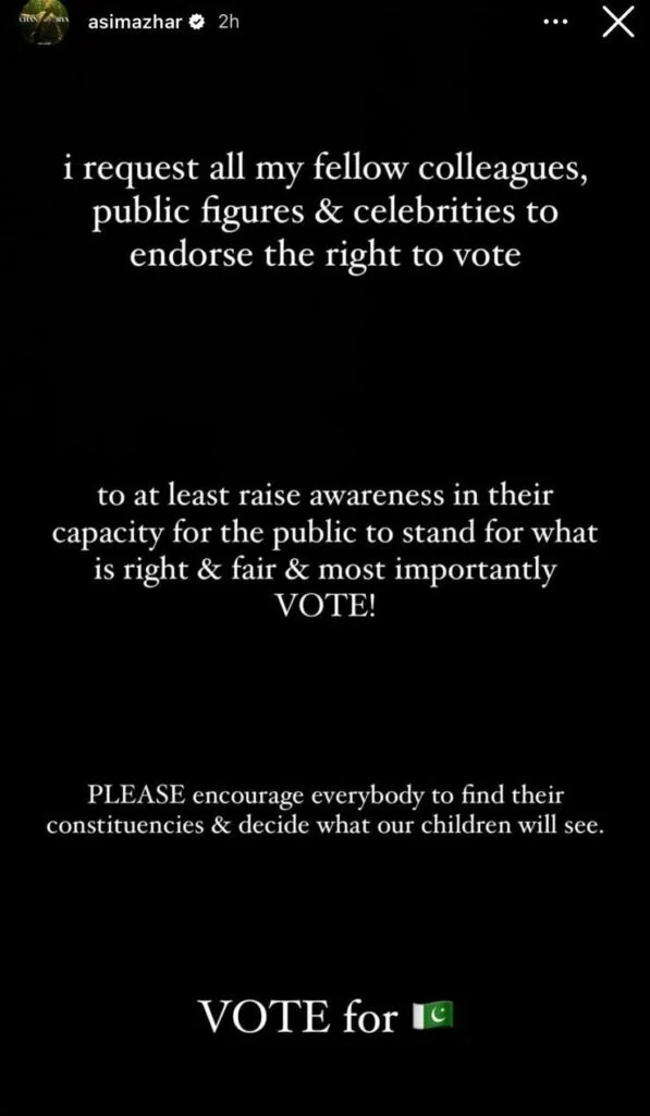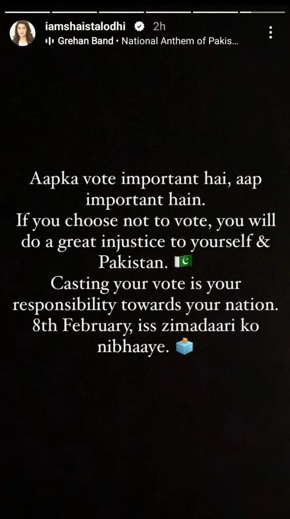 عام انتخابات کے دن نا صرف ملک بھر کی سیاسی جماعتیں عوام سے ووٹ مانگ رہی ہیں بلکہ پاکستان شوبز انڈسٹری کی نامور شخصیات بھی عوام سے ووٹ ڈالنے کی اپیل کررہی ہیں۔