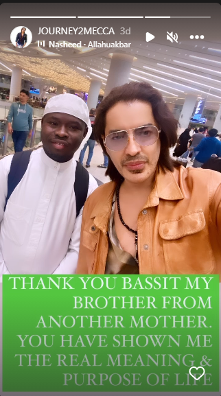 اداکار نے انسٹاگرام پر اپنے ’مکہ کے سفر‘ میں اپنے ایک دوست کے ساتھ تصویر شیئر کی اور لکھا شکریہ میرے بھائی باسط۔ آپ نے مجھے زندگی کے اصل معنی اور مقصد بتائے۔