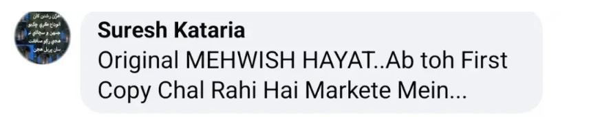 دوسرے صارف کا کہنا ہے ’’یہ ہے اصلی مہوش حیات، اب جو نظر آتی ہے وہ تو بس ایک کاپی ہے‘‘.