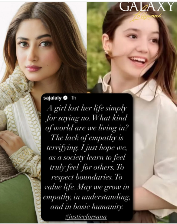 اداکارہ سجل علی نے سوشل میڈیا پر لکھا کہ ایک لڑکی نے صرف ‘نہیں’ کہا اور اسے جان سے مار دیا گیا، ہم کیسا بےحس معاشرہ بن چکے ہیں؟