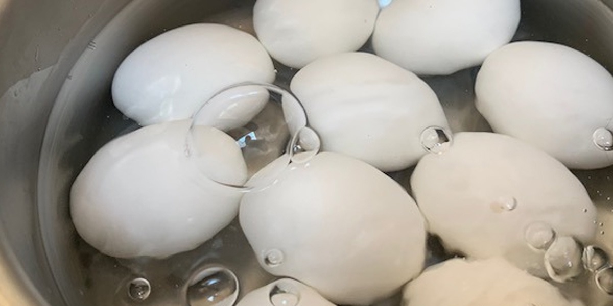 انڈے کو نکال کر اس برتن میں رکھیں جس میں آپ ان کو اُبالتے ہیں، پھر اس میں اتنا پانی ڈالیں کہ پانی انڈے کے تھوڑا اوپر ہو۔