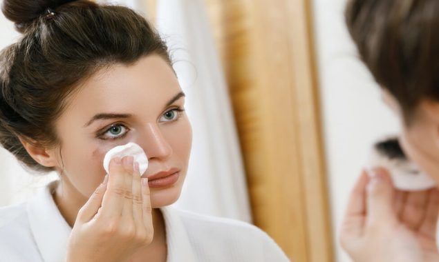اپنی جلد کے پی ایچ توازن کو بحال کرنے کے لیے میک اپ ہٹانے کے بعد لازمی ٹونر کا استعمال کریں۔