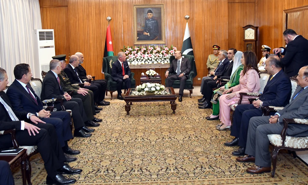 صدر زرداری نے اردن کے ساتھ قریبی تعاون کے عزم کا اعادہ کرتے ہوئے دونوں ممالک کے درمیان مزید مضبوط روابط کے لیے مشترکہ حکمت عملی بنانے پر زور دیا۔