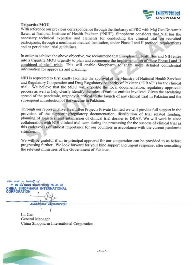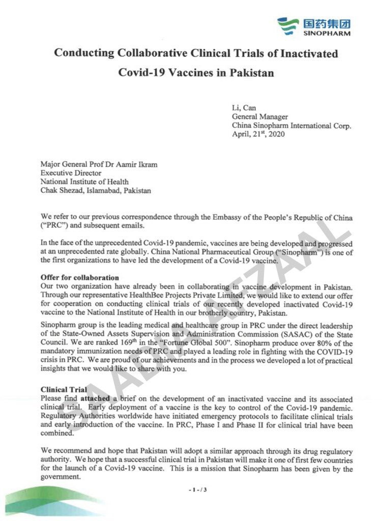 پاکستان میں کلینکل ٹرائل کے لئے صرف ضابطے کی کارروائی مکمل کرنا باقی ہے۔