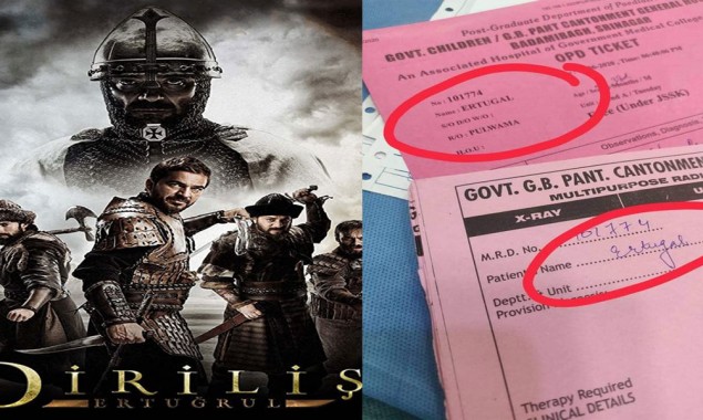 مائیکرو بلاگنگ سائٹ ٹوئٹر پرطاہر نامی صارف نے نوزائیدہ بچے کی پیدائش کے بعد بننے والے اسپتال کارڈ کی تصویر شیئر کی جس میں دیکھا جاسکتا ہے کہ مقبوضہ کشمیر میں مقیم والدین نے اپنے بیٹے کا نام ’ارطغرل غازی‘ کے مرکزی کردار ’ارطغرل‘ کے نام پر رکھا ہے۔