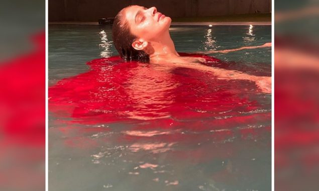 اداکارہ کی جانب سے پوسٹ کی جانے والی تصویر میں دیکھا جا سکتا ہے کہ وہ ایک سوئمنگ پول میں موجود ہیں۔