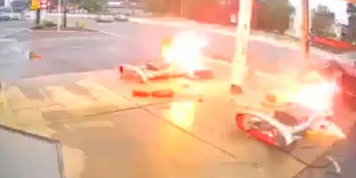 رپورٹس کے مطابق یہ حادثہ سرخ کار کے ڈرائیور کی تیز رفتاری کے باعث پیش آیا اور گاڑی بے قابو ہوتی ہوئی گیس اسٹیشن کے پمپ سے جا ٹکرائی جس کے باعث دو پمپ میں آگ بھڑک اُٹھی ۔
