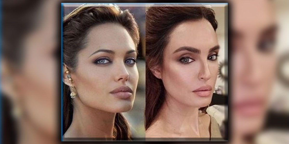 نادیہ حسین کی جانب سے شیئر کی گئی تصویر میں دیکھا جا سکتا ہے کہ انہوں نے امریکی اداکارہ انجلینا جولی جیسا میک اپ، ہیئر اسٹائل اور پوز بنایا ہوا ہے۔