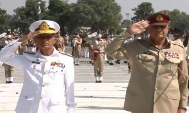 ایڈمرل امجد خان نیازی نے جی ایچ کیو کے دورے کے دوران وہاں واقع یادگارِ شہداء پر پھول رکھے اور فاتحہ خوانی کی۔